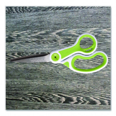 CarboTitanium Bonded Scissors, 8" Long, 3.25" Cut Length, Straight White/Green Handle