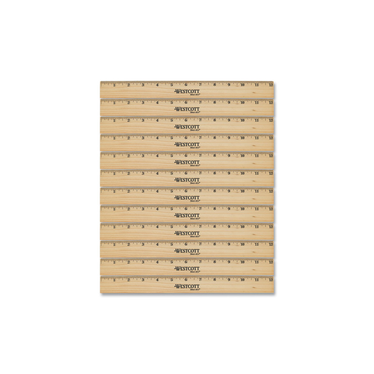 Selected hardwood with a multiple-coat clear lacquer finish. Single metal edge to preserve the edge when used for straight-line drawing or cutting . Scaled in sixteenths. Numerals and graduations are sharply delineated. Suitable for use in the home, school, shop or office. 1 5/16" wide x 1/4" thick.