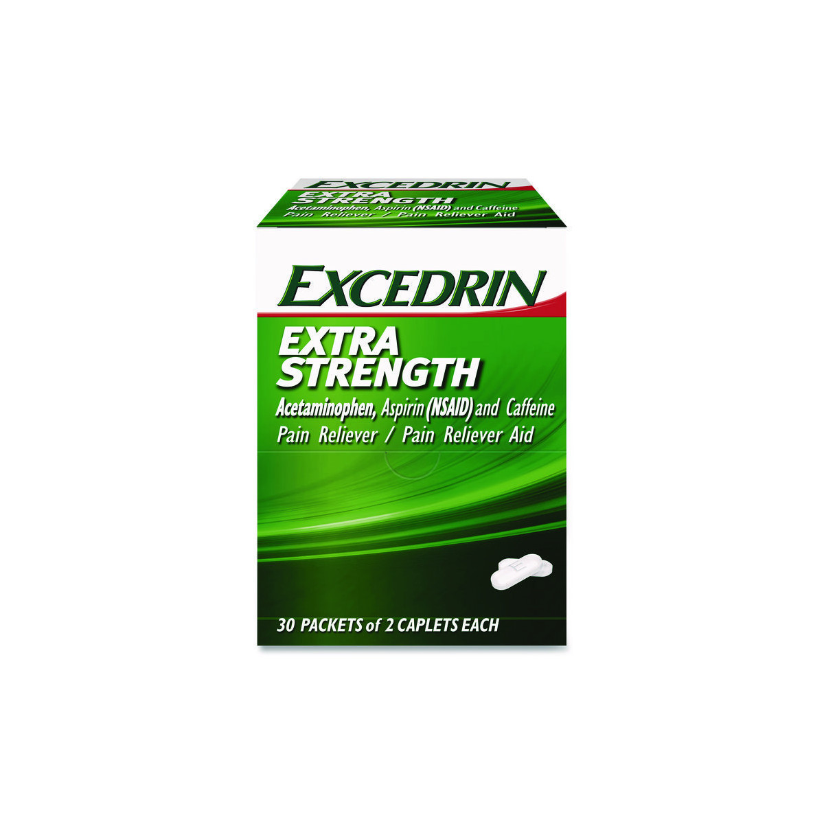 The Excedrin Extra Strength caplet combines three active ingredients to provide a strong over-the-counter medicine for headaches and other kinds of pain. It has a fast-acting formula that delivers extra-strength headache relief. For some, relief starts in as little as 15 minutes, to help you get back to your day.