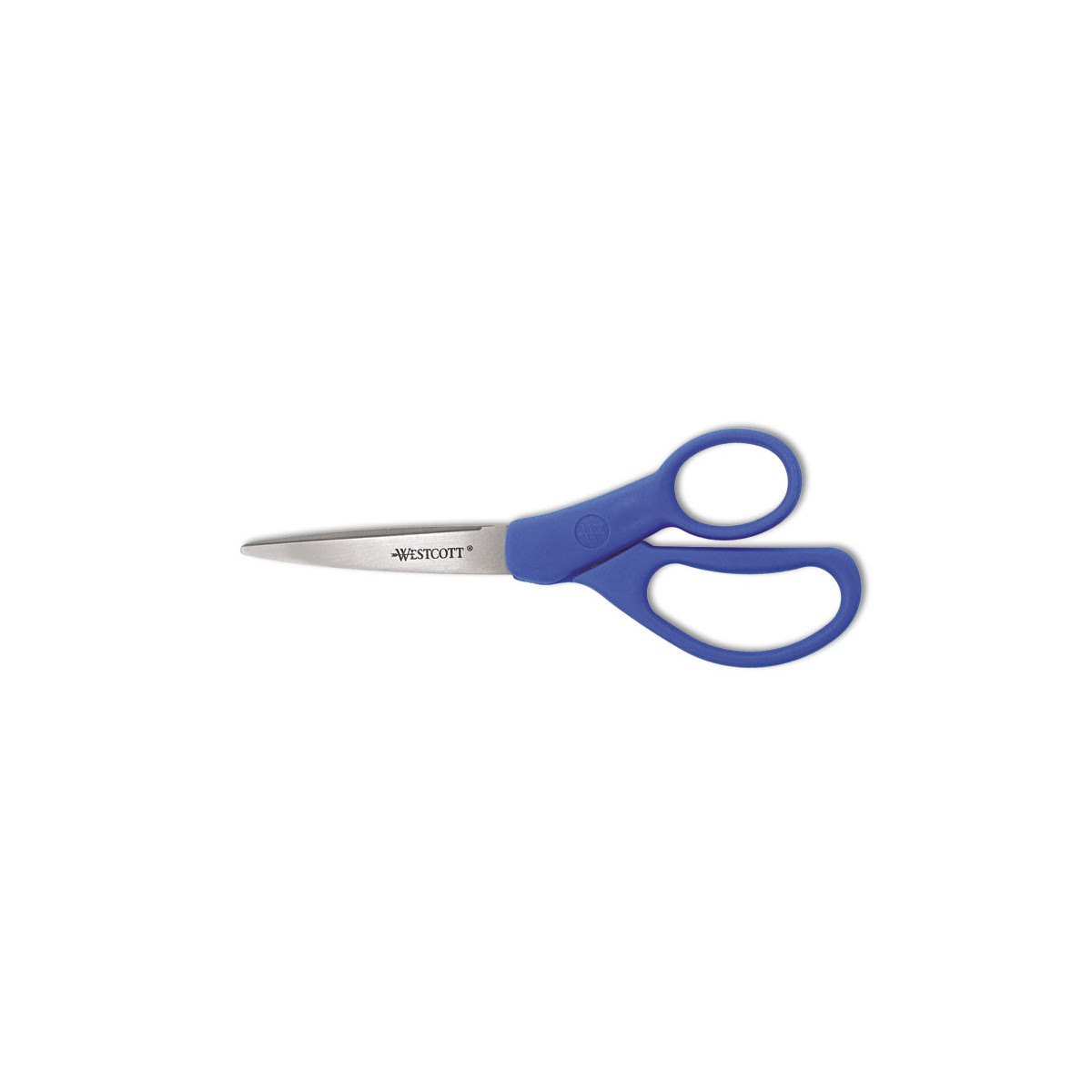 Westcott has provided the world with innovative and well designed products for over a century... at affordable prices, without sacrificing quality. All-purpose shears with corrosion-resistant, stainless steel blades. The blades are ground on the inside and back edges for smooth, effortless cutting. Insert molded into plastic handles for greater durability. Made for both right and left-handed use. Made for lightweight usage perfect for paper, ribbon and and photos.