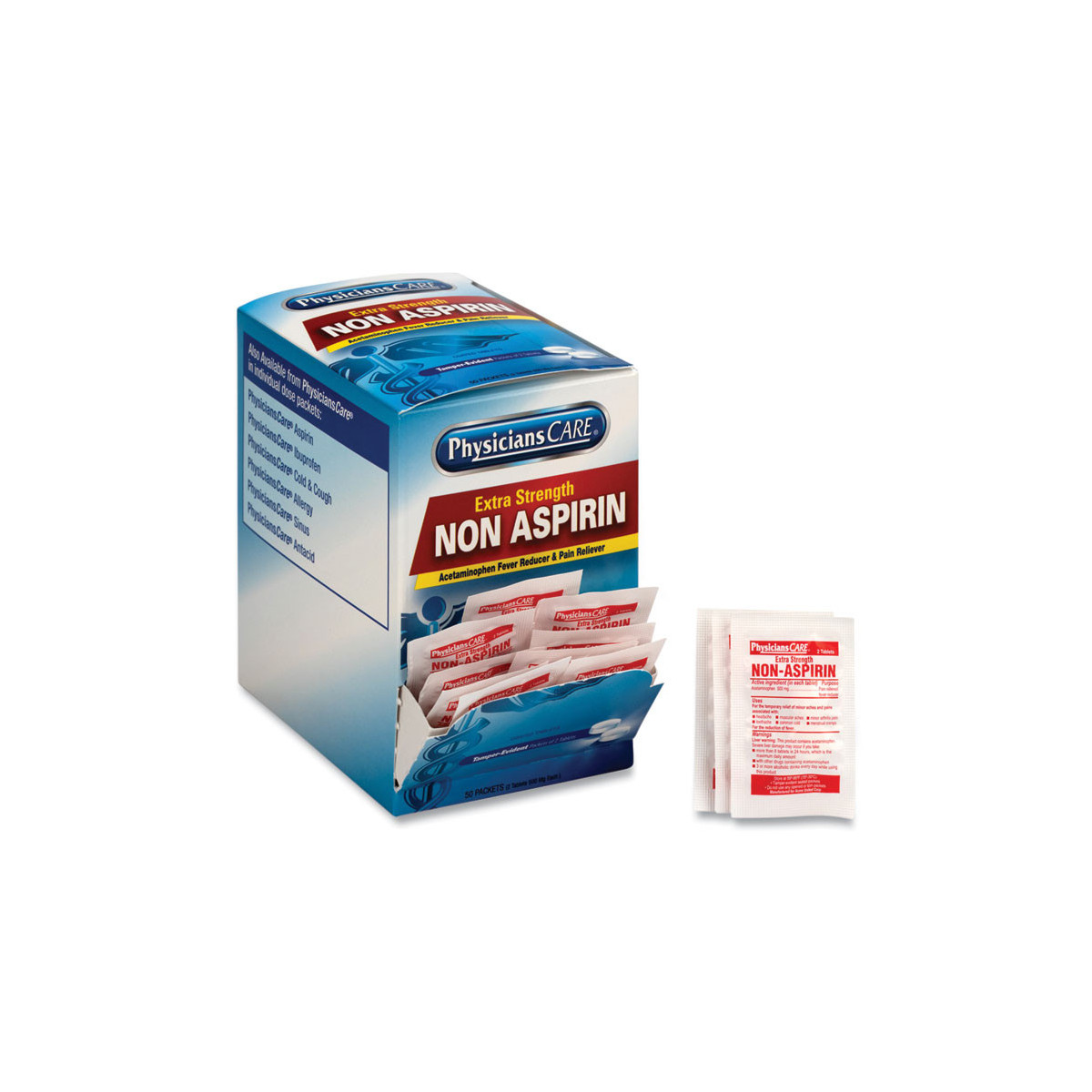 Temporary relief of minor aches and pains associated with headache, toothache, minor arthritis pain, muscular aches, common cold and menstrual cramps. Packaged for individual use to replenish first aid stations and kits.