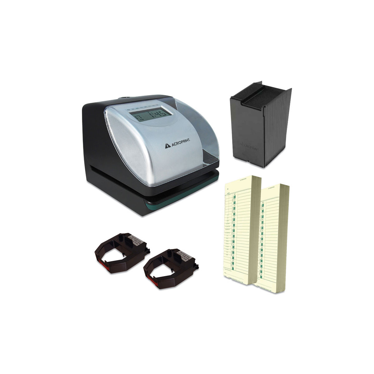Recorder can be used for time and attendance, job costing, and/or document control. The clear window and internal LCD light make for easy document alignment. There are options for automatic, semi-automatic, or manual print operation and it accommodates right or left-hand punching. The clock also has a built-in perpetual calendar that will automatically change for Daylight Saving Time and an internal battery backup that maintains time during power outages. The clock has 13 preset messages available and font sizes can be adjusted to accommodate the user's document.