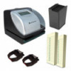 The ES700 time recorder can be used for time and attendance, job costing, and/or document control. The clear window and internal LCD light make for easy document alignment. There are options for automatic, semi-automatic, or manual print operation and it accommodates right or left-hand punching. The clock also has a built-in perpetual calendar up to the year 2099 that will automatically change for Daylight Saving Time and an internal battery backup that maintains time during power outages. It can be set to provide registrations in either standard (12 hour) or military (24 hour) time, and you can also choose between minutes, tenths, twentieths, hundredths, and/or seconds. The clock has 13 preset messages available (RCVD, SENT, IN, OUT, FILED, CFMD, PAID, USED, FAXED, VOID, ORIGIN, APR'D, COMPL'D) and font sizes can be adjusted to accommodate the user's document. Language options include English, Spanish, French, and Portuguese. For your security, programming is password protected.