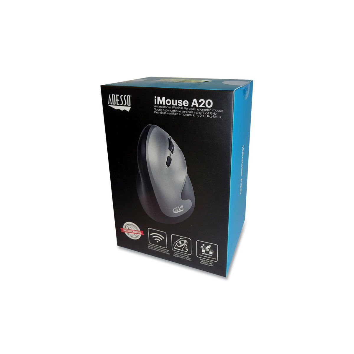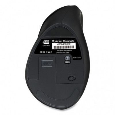 This wireless mouse is specially designed with a vertical shape which provides a uniquely comfortable ergonomic mouse experience. Antimicrobial coating resists germs and bacteria on the mouse surface. Buttons are conveniently located on the side allowing for intuitive control and faster back and forward browsing. The switchable dpi (1000/1600/2400) provides for two levels of control. Its optical sensor tracking method lets you work on most surfaces with better speed and accuracy. It includes a nano receiver to offer you up to 33 ft of wireless freedom and eliminates the constraints that wired mice often cause. The iMouse A20 is plug and play and requires no drivers.