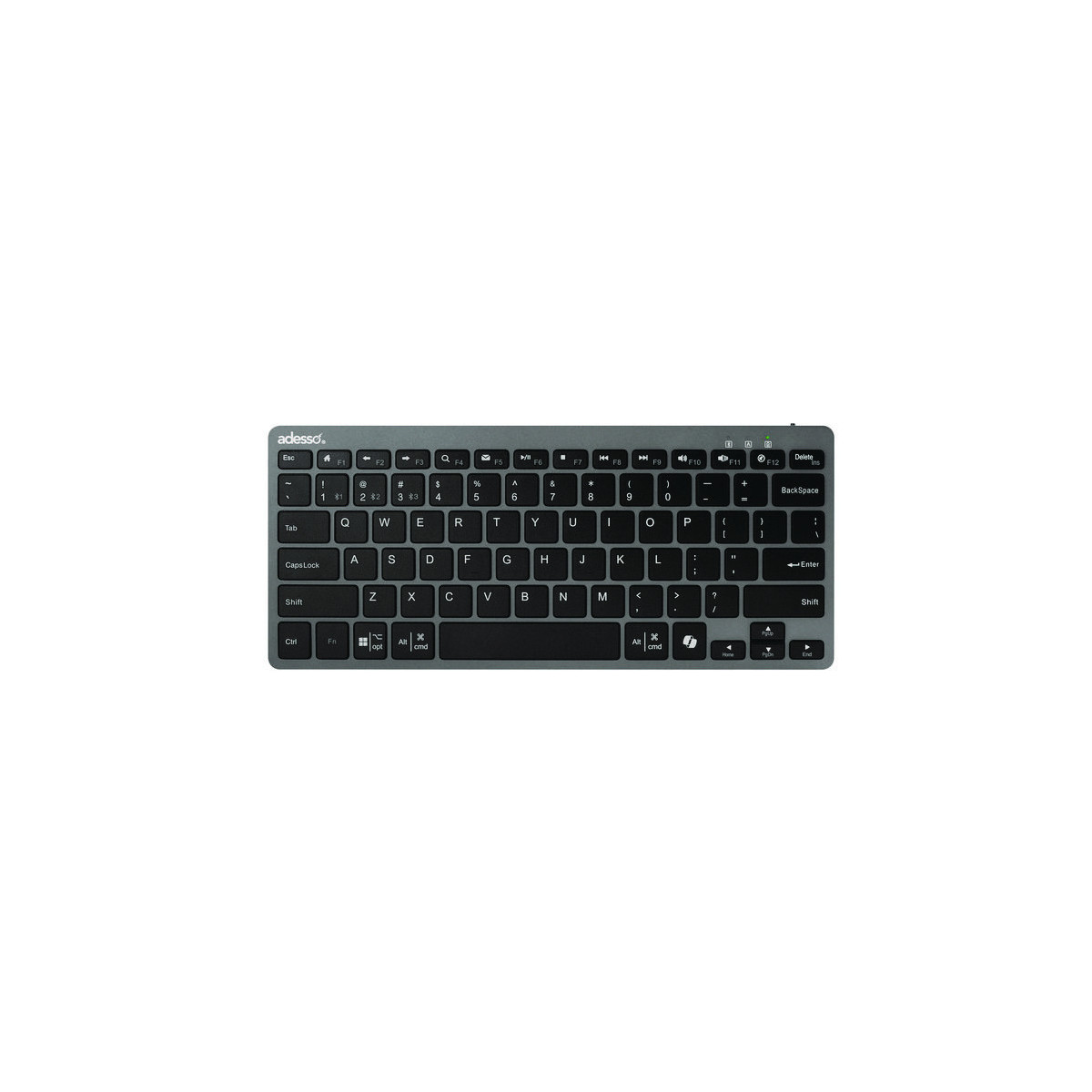 The Adesso WKB-7000 is a mini scissor-switch keyboard with a CoPilot AI hotkey that has the capability of working wirelessly through Bluetooth® and is built to make handling your daily computer tasks easier. This sleek keyboard uses switches that provide a more quiet, tactile and snappy response when typing.