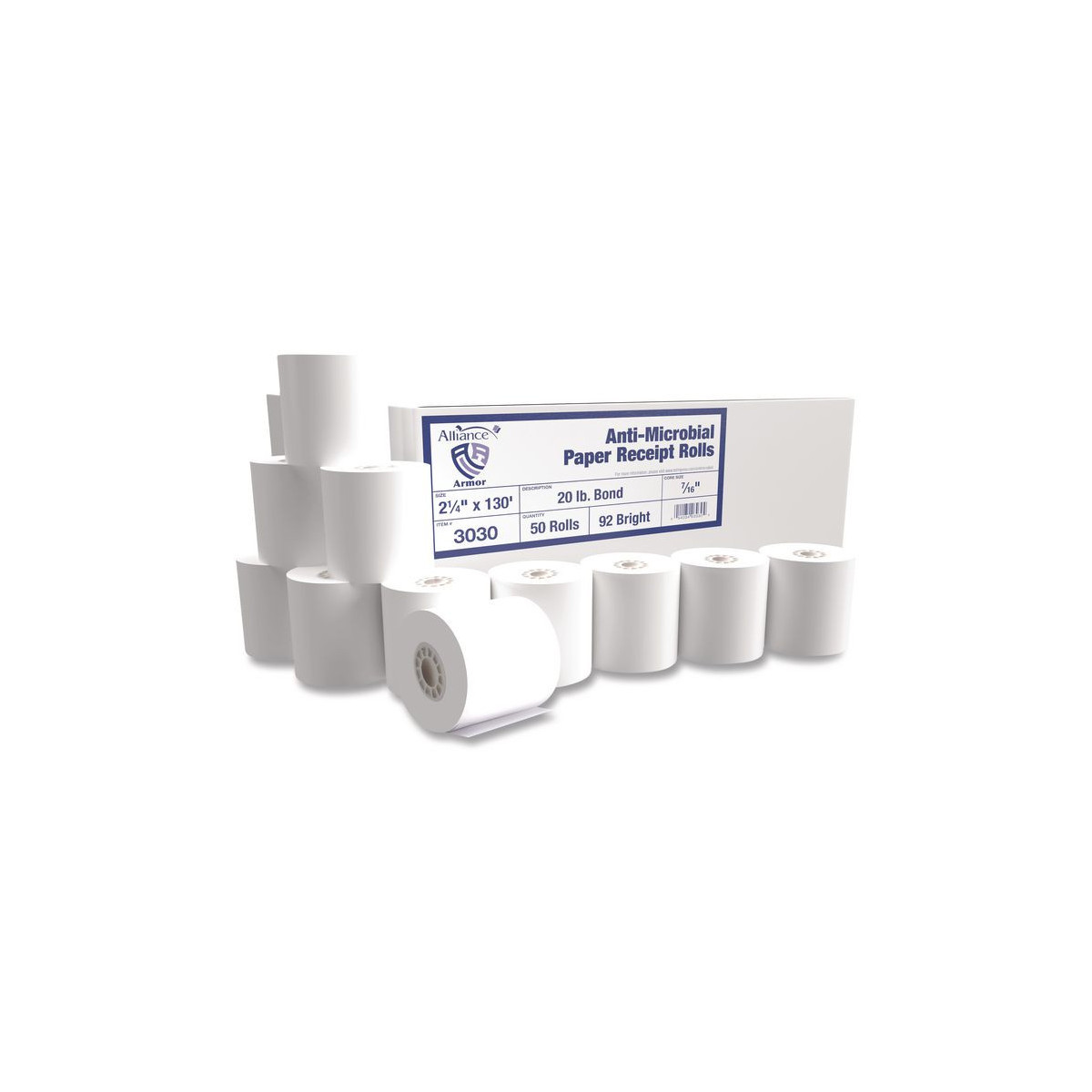 This paper roll is treated with silver ion technology to provide antimicrobial product protection against unwanted microorganisms. It protects the paper from microbial transfer and growth, creating a barrier to inhibit the growth of microorganisms.