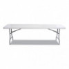 Crafted with a blow-molded high-quality polyethylene top, this lightweight folding table is resistant to dents, scratches and water exposure. Its sturdy steel legs fold neatly into an underside cavity for safe storage and effortless transport. Designed for both indoor and outdoor environments, the durable surface stands up to heavy use while remaining easy to clean.