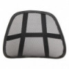 Ergonomically designed stretched mesh backrest supports the lower back. Contoured shape and curves to keep the back in alignment. Breathable mesh fabric keeps the back cool and supported. Adjustable elastic straps secures backrest in place. Great with office chairs, car seats, or in the home.
