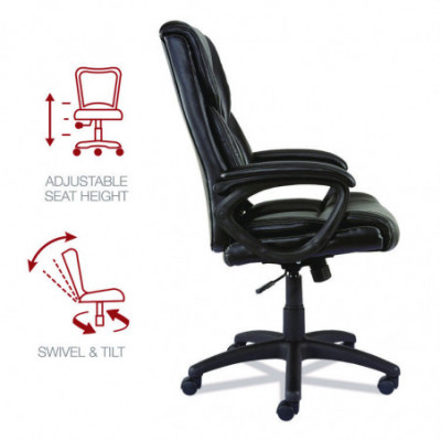 Comfort and style combine when you add this faux leather chair to your workspace. The extended back, lumbar support, and plush padding enhance comfort. The soft, Luxura™, leather-look upholstery is easy-to-clean and adds a modern touch. Fully customizable pneumatic seat height adjustment lets you find the right position for your desk and screen height. Recline at the perfect angle for the task at hand with built-in tilt tension and lock. Some assembly required.