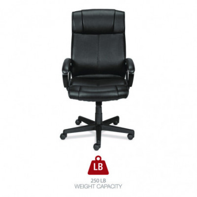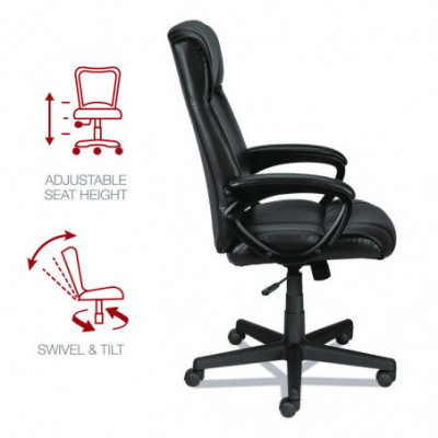 Stay comfortable through extended workdays with this stylish, high-back manager's chair. Designed for luxurious comfort and maximum head, neck, back, and shoulder support with plush cushioning, padded armrests, and adjustable lumbar support. Customize your working position with adjustable height and tilt tension. The bonded leather seat has a modern touch and is easy-to-clean. Swivel and tilt to reach items stored in drawers or stashed under your desk. Mobile design features a stable, five-star base with rolling casters.