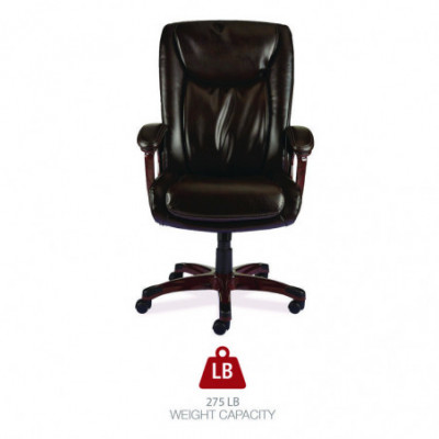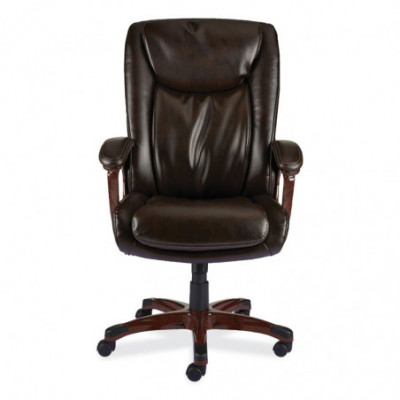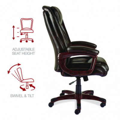 Sit comfortably while making a statement in the Darnick executive chair. Durable, bonded leather with matching, wood-like accents, the executive armchair commands attention and adds luxury to a manager's office or work-from-home setting. Added comfort with extra cushioned, upholstered back, built-in lumbar support, and padded armrests. Customized back support with a tilt tension reclining, angle adjustment that locks into place. Height adjustable seat. Five casters on a wide, stable base allows mobility.