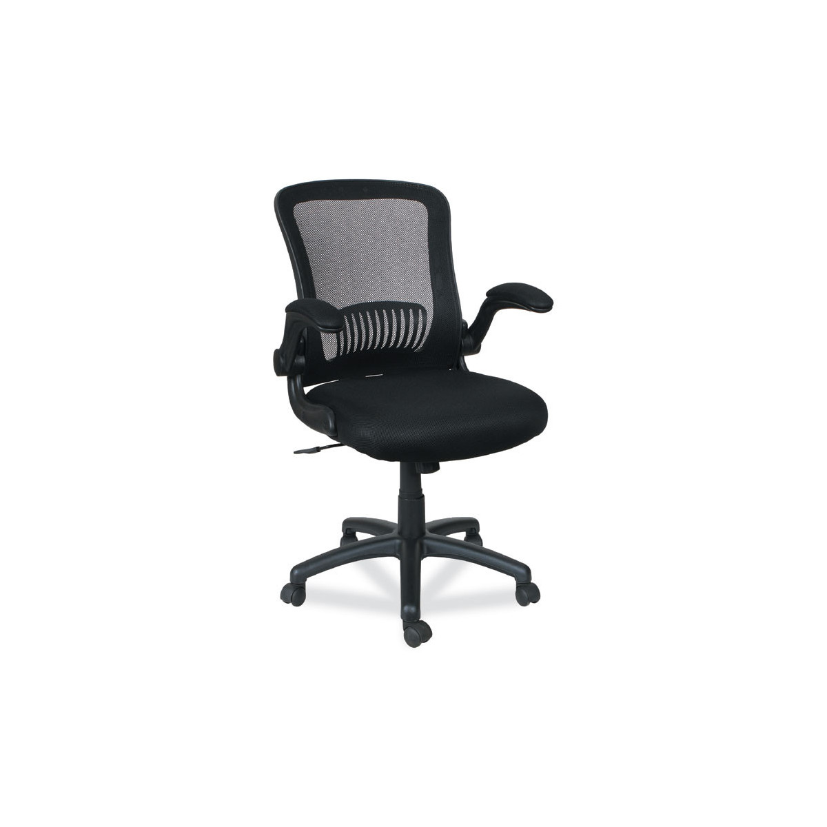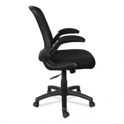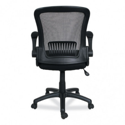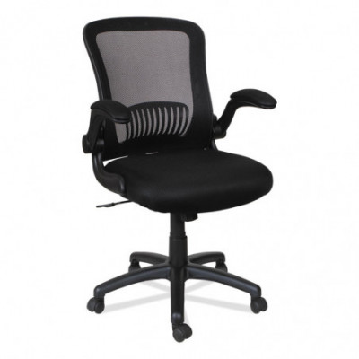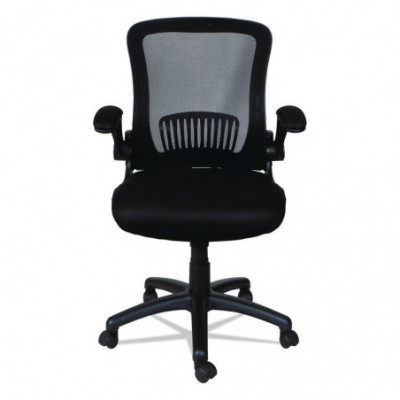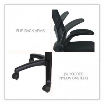 Adjustable chair with flip-back arms that pivot back and out of the way when not needed. Constructed with a breathable mesh back and generously padded seat for all-day comfort. Built-in mesh armrests are padded for extra comfort. The waterfall seat edge reduces pressure points at the back of the knee. Thoughtfully designed with integrated lumbar support that helps reduce neck and back strain.