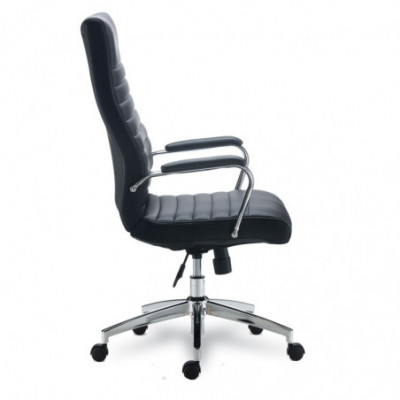 Stay comfortable through extended workdays with this bonded leather, highback chair with chrome accents. Designed for luxurious comfort and maximum head, neck, back, and shoulder support with cushioning and lumbar support. Customize your working position with adjustable seat height and tilt tension. Swivel and tilt to reach items stored in drawers or stashed under your desk. Mobile design features a stable, five-star base with rolling casters which are compatible with carpet or tile floors. Supports up to 275 lbs. Assembly required.