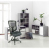 Multifunction mechanism with seat glide allows back angle adjustment relative to seat, adjustable tilt (free floating or infinite locking positions) and forward tilt. Cool, breathable mesh back. Contoured seat cushion with waterfall edge to help relieve pressure on legs. Height- and width-adjustable arms with soft polyurethane pads. Five-star base with casters for easy mobility.