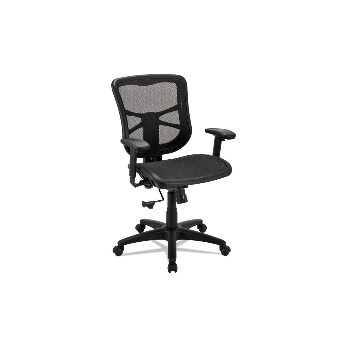 This chair offers an ergonomic design that adjusts to fit multiple users. Its cool and breathable mesh back and contoured waterfall seat cushion helps relieve pressure on the legs. Adjustable lumbar support and a height-adjustable ratchet back deliver personalized spinal alignment. Five-star base with casters allows for easy mobility.