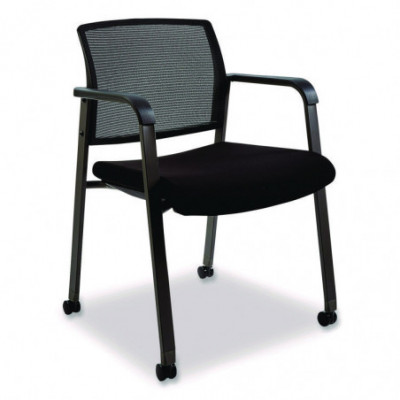 Enhance the look of your lobby or reception area with this sleek guest chair. Its sturdy metal frame ensures reliable support and stability. The chair features a breathable mesh back that promotes airflow for added comfort, while the contoured padded seat offers all-day ease. Designed with curved armrests for improved upper-body support, this chair meets standards for safety and durability.