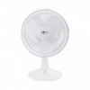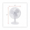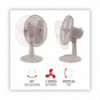 Oscillating fan provides smooth, cooling air flow. 12" diameter fan blades provide ample air circulation with minimal noise. Features three speed settings, oscillation on/off control and vertical tilt adjustability. 80° oscillation with knob for wide area coverage or single direction flow. Takes up minimal space on a counter or desk, leaving you more room to work but still allowing the fan to be close by.