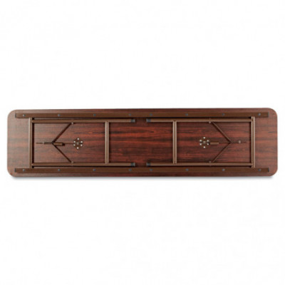 Folding table with scratch-resistant melamine top that is 0.63" thick with a one-piece, 1.75" steel apron and protective edging. Fully finished laminate on top and underside to prevent warping. Laminate is scratch, dent, and water-resistant for long-lasting use. The gravity leg-locking mechanism makes set-up quick and easy. Folds to 2.5" thick and locks for easy transport and storage. 1" diameter, steel legs have plastic foot caps to protect floors. Holds up to 1,200 lbs of evenly distributed weight.