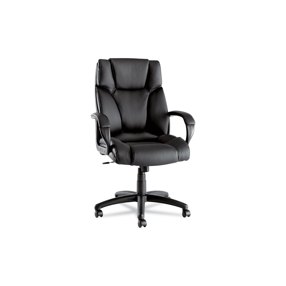 Ultra-soft cushions, side bolsters and lumbar bolsters for maximum support. Plush, thickly-padded headrest and arm rests. Soft touch bonded leather upholstery for style and comfort. Waterfall seat edge reduces pressure points at the back of the knees for improved circulation. Five-star base with casters for easy mobility.