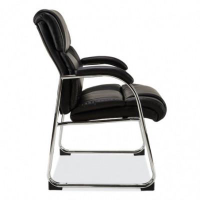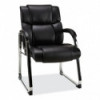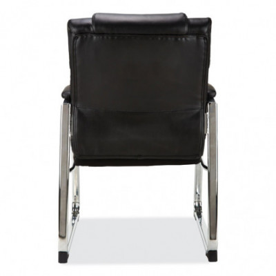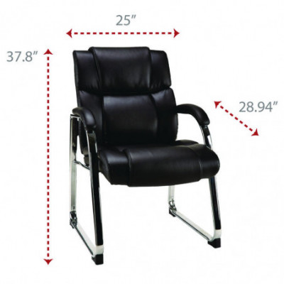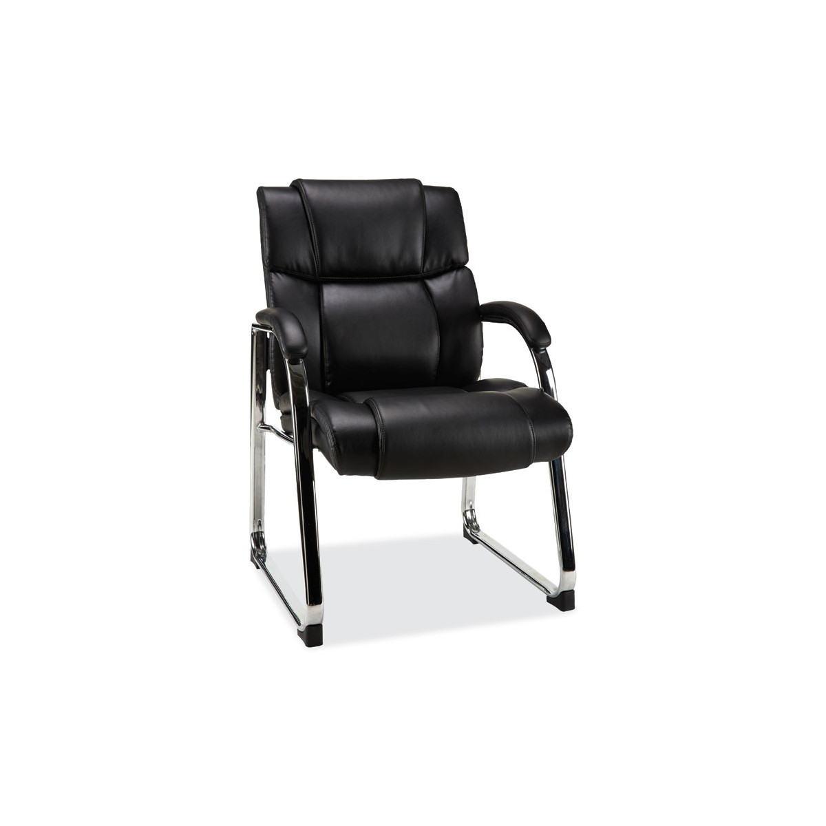 Welcome visitors to your lobby or office with a comfortable and stylish leather guest chair. Plush comfort with segmented seat and back padding. Curved, padded armrests offer upper body support. The bonded, durable leather upholstery wipes clean, making it ideal for lobbies or waiting areas. The sled-shaped base keeps the chair stable and integrated floor glides prevent scratches and scuffs. The polished chrome accents and sleek silhouette add an upscale, modern look to your office, reception area, or lobby.
