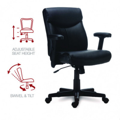 Stay comfortable through with this stylish, manager's chair. Designed for luxurious comfort, it supports your head, neck, back, and shoulders with plush cushioning and lumbar support. Height and width-adjustable arms for the perfect set-up. Further customize your working position with adjustable seat height and locking tilt tension. The faux leather seat has a modern touch and is easy-to-clean. Mobile design features a stable, five-star base with rolling casters which work on carpet or hard floors. Supports up to 275 lbs. Assembly required.