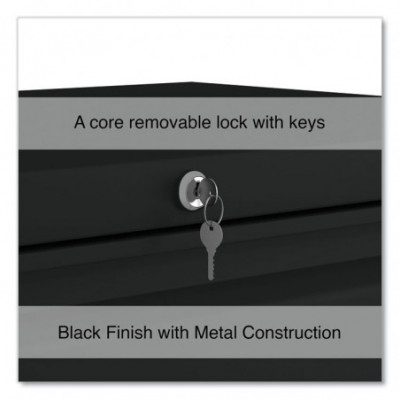 Drawers with side-to-side hang rails to accommodate letter/legal hanging files. Full drawer extension on steel ball bearing telescoping slide suspension helps drawers glide with ease. Stylish, full-width radius edge recessed pulls help to quickly open and close drawers. Anti-tipping interlock system allows only one drawer to open at a time. Single key core removable lock with two keys. Four adjustable leveling glides. Durable powder coated finish helps prevent scratches.