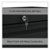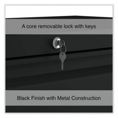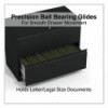 Drawers with side-to-side hang rails to accommodate letter/legal hanging files. Full drawer extension on steel ball bearing telescoping slide suspension helps drawers glide with ease. Stylish, full-width radius edge recessed pulls help to quickly open and close drawers. Anti-tipping interlock system allows only one drawer to open at a time. Single key core removable lock with two keys. Four adjustable leveling glides. Durable powder coated finish helps prevent scratches.