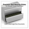 Drawers with side-to-side hang rails to accommodate letter/legal hanging files. Full drawer extension on steel ball bearing telescoping slide suspension helps drawers glide with ease. Stylish, full-width radius edge recessed pulls help to quickly open and close drawers. Anti-tipping interlock system allows only one drawer to open at a time. Single key core removable lock with two keys. Four adjustable leveling glides. Durable powder coated finish helps prevent scratches.