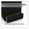 Drawers with side-to-side hang rails to accommodate letter/legal hanging files. Full drawer extension on steel ball bearing telescoping slide suspension helps drawers glide with ease. Stylish, full-width radius edge recessed pulls help to quickly open and close drawers. Anti-tipping interlock system allows only one drawer to open at a time. Single key core removable lock with two keys. Four adjustable leveling glides. Durable powder coated finish helps prevent scratches.