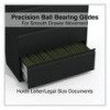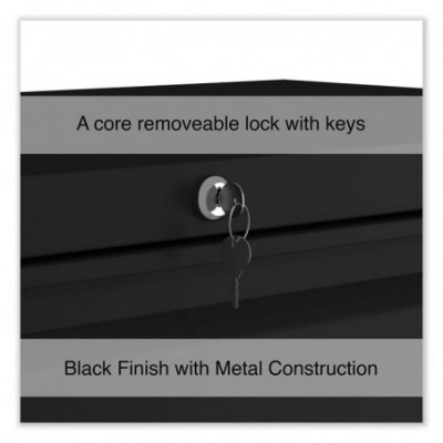 Drawers with side-to-side hang rails to accommodate letter/legal hanging files. Full drawer extension on steel ball bearing telescoping slide suspension helps drawers glide with ease. Stylish, full-width radius edge recessed pulls help to quickly open and close drawers. Anti-tipping interlock system allows only one drawer to open at a time. Single key core removable lock with two keys. Four adjustable leveling glides. Durable powder coated finish helps prevent scratches.
