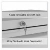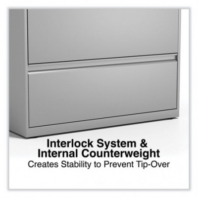 Drawers with side-to-side hang rails to accommodate letter/legal hanging files. Full drawer extension on steel ball bearing telescoping slide suspension helps drawers glide with ease. Stylish, full-width radius edge recessed pulls help to quickly open and close drawers. Anti-tipping interlock system allows only one drawer to open at a time. Single key core removable lock with two keys. Four adjustable leveling glides. Durable powder coated finish helps prevent scratches.