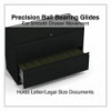 Drawers with side-to-side hang rails to accommodate letter/legal hanging files. Full drawer extension on steel ball bearing telescoping slide suspension helps drawers glide with ease. Stylish, full-width radius edge recessed pulls help to quickly open and close drawers. Anti-tipping interlock system allows only one drawer to open at a time. Single key core removable lock with two keys. Four adjustable leveling glides. Durable powder coated finish helps prevent scratches.