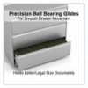 Drawers with side-to-side hang rails to accommodate letter/legal hanging files. Full drawer extension on steel ball bearing telescoping slide suspension helps drawers glide with ease. Stylish, full-width radius edge recessed pulls help to quickly open and close drawers. Anti-tipping interlock system allows only one drawer to open at a time. Single key core removable lock with two keys. Four adjustable leveling glides. Durable powder coated finish helps prevent scratches.
