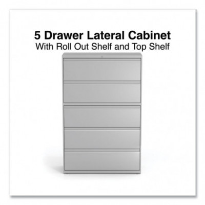Lateral File, 5 Legal/Letter/A4/A5-Size File Drawers, 1 Roll-Out Posting Shelf, Light Gray, 42" x 18.63" x 67.63"