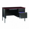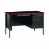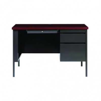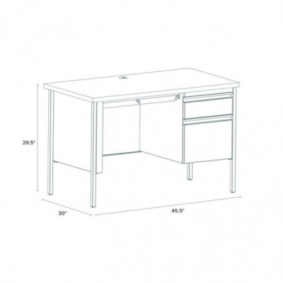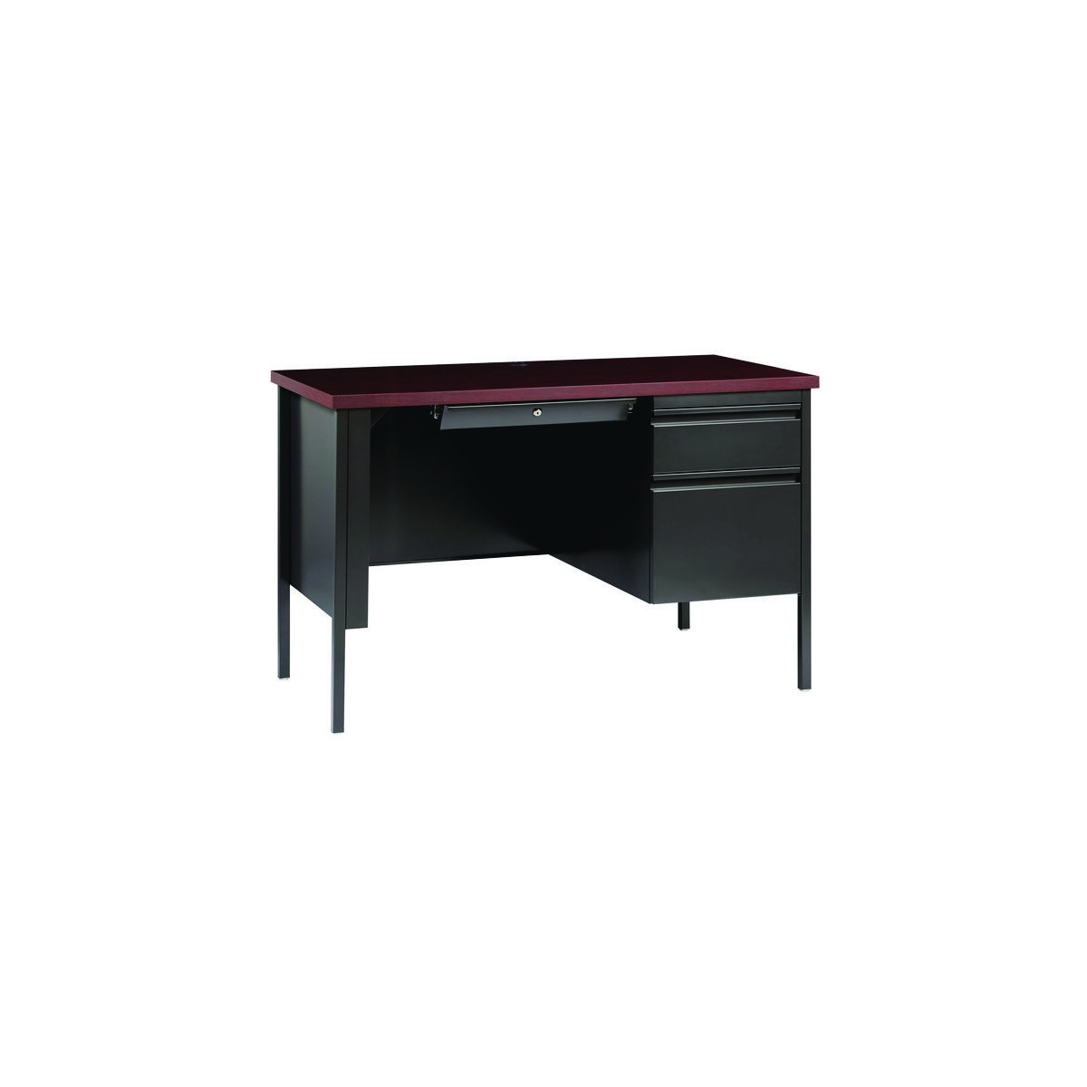 Solid and stable desk with square edge laminated top that is scratch- and stain-resistant. Built with a durable, powder-coated steel frame with 1" square tubular steel legs. Standard features include full extension ball-bearing drawer slides for smooth drawer action, central locking center drawer, and a strong laminate wood top. Desks ship fully assembled except for the legs. All necessary hardware to attach the legs is included. Designed to meet or exceed ANSI-BIFMA industry standards for performance and workmanship.
