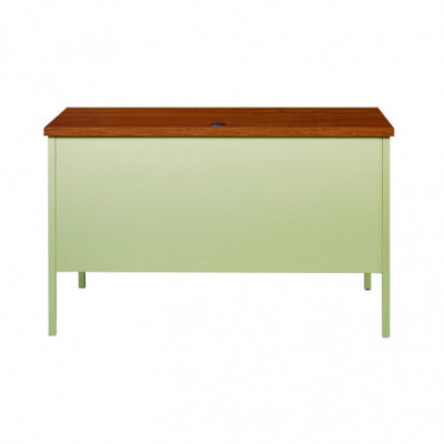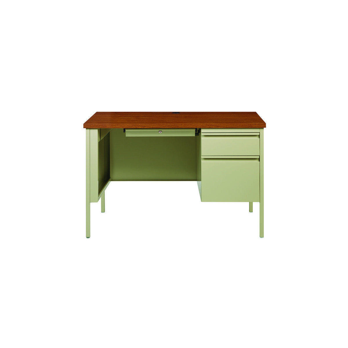 Solid and stable desk with square edge laminated top that is scratch- and stain-resistant. Built with a durable, powder-coated steel frame with 1" square tubular steel legs. Standard features include full extension ball-bearing drawer slides for smooth drawer action, central locking center drawer, and a strong laminate wood top. Desks ship fully assembled except for the legs. All necessary hardware to attach the legs is included. Designed to meet or exceed ANSI-BIFMA industry standards for performance and workmanship.