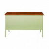 Solid and stable desk with square edge laminated top that is scratch and stain-resistant. Built with a durable, powder-coated steel frame with 1" square tubular steel legs. Standard features include full extension ball-bearing drawer slides for smooth drawer action, central locking center drawer, and a strong laminate wood top. Desks ship fully assembled except for the legs. All necessary hardware to attach the legs is included. Designed to meet or exceed ANSI-BIFMA industry standards for performance and workmanship.