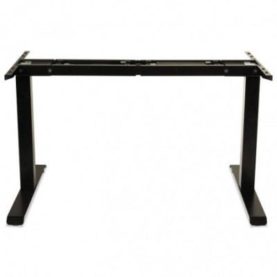Set the perfect height when sitting or standing, when you choose this electric, two-stage, height-adjustable table base. Durable, powder-coated steel base features a 250 lb maximum lift capacity (maximum capacity includes the sold-separately table-top), a lift/lower range from 27" to 45.2" as well as a standard up-and-down control set. Dual-motors provide speeds of up 0.8" per second (depending on overall load); and though designed specifically for use with ALETT Series Reversible Laminate Rectangular Table Tops (sold separately), these steel-frame bases attach to most common rectangular tops ranging from 47.5" to 72" in width and 24" to 36" in depth. Integrated crossbar supports prevent racking while ensuring overall stability. Adjustable leveling glides help you compensate for uneven fl