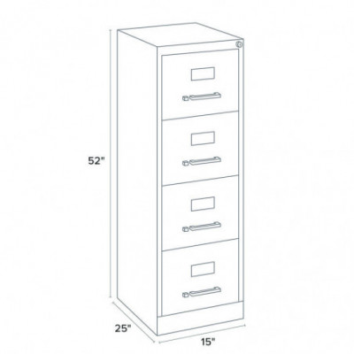 Economy Vertical File, 4 Letter-Size File Drawers, Light Gray, 15" x 25" x 52"