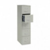 Economy Vertical Files are ideal for long-term, archival storage. High-sided drawers accommodate both standard and hanging file folders, no separate hang rails required. Each drawer's wire follower can be easily adjusted into a series of pre-drilled guide holes to keep files neatly in place. Telescoping, full-extension, ball-bearing suspensions provide smooth movement throughout their range, ensuring easy access to all materials stored inside. The face of each drawer also features a sturdy aluminum handle and thumb latch. Core removable lock allows you to key all your file cabinets alike.