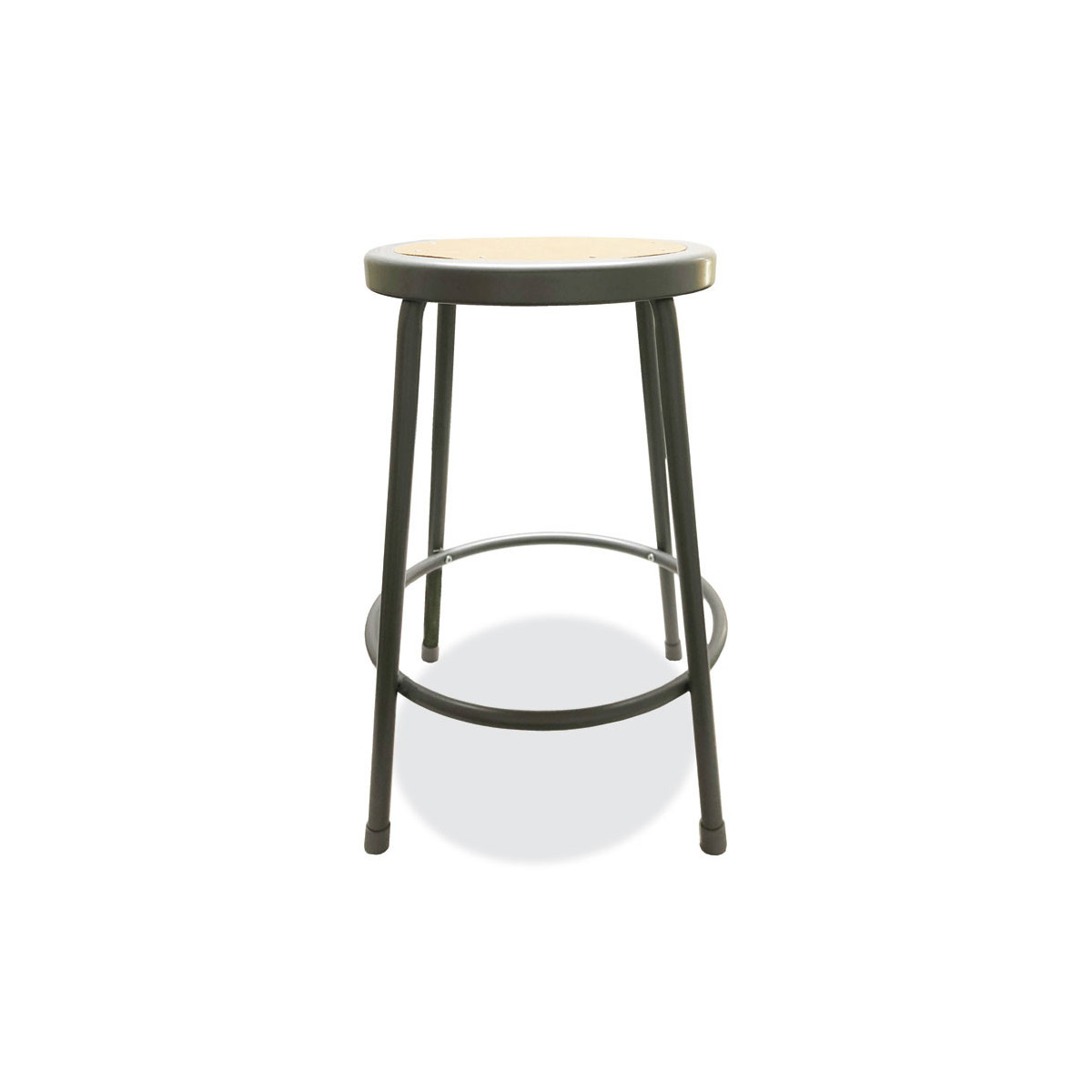 Ideal in the shop, garage, science or art lab, factory floor, or anywhere where durability matters most. Warp-, crack-, and chip-proof Masonite board is riveted to the seat pan. Built-in foot ring provides a place to rest your feet when seated. Includes non-marring floor glides. Stackable to save space.