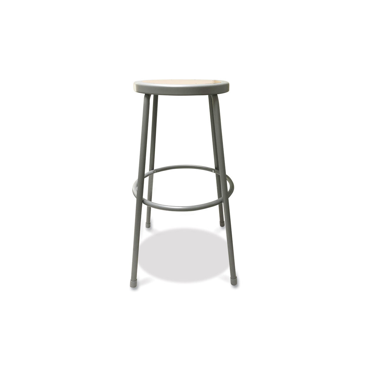 Ideal in the shop, garage, science or art lab, factory floor, or anywhere where durability matters most. Warp-, crack-, and chip-proof Masonite board is riveted to the seat pan. Built-in foot ring provides a place to rest your feet when seated. Includes non-marring floor glides. Stackable to save space.