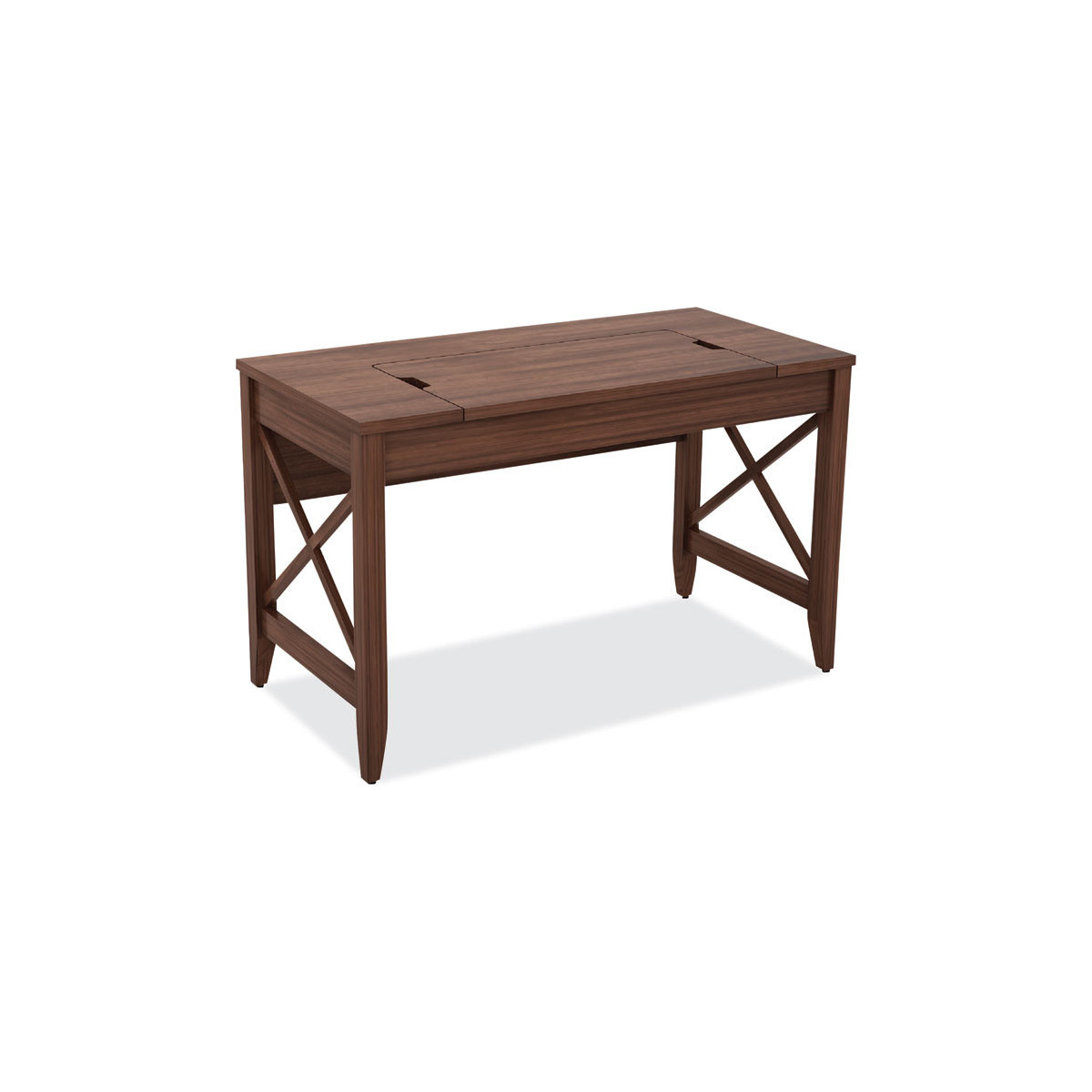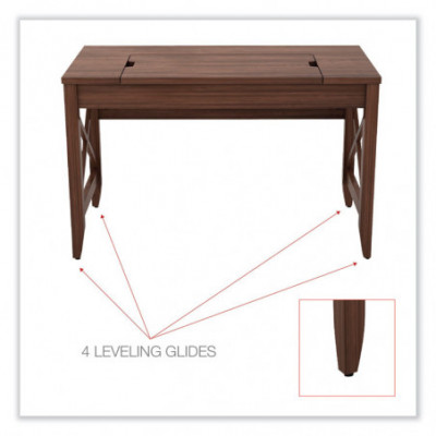 Sit-to-stand desk that functions as a standing or seated workspace with a built-in, height adjustable work surface. This versatile desk has everything you need and takes up minimal floor space. The lift portion of the desk surface has infinite height adjustability that can be locked in several positions within a 14" range. Easily transition between seated and standing positions with the mobile lift which is flush with top surface when lowered. Stylish tapered legs with leveling glides to adjust for uneven floors.