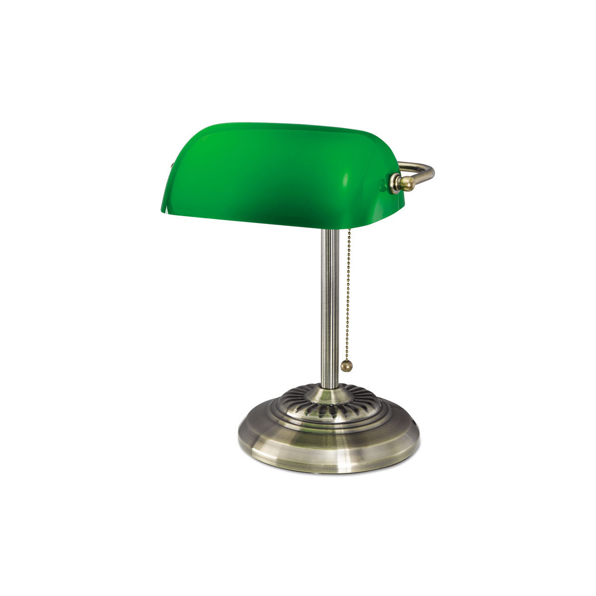 Classic design adds sophistication and elegance to any office, study, or home den. Refined glass shade rotates to pilot light direction. Classic pull chain for easy on/off power. 13W CFL bulb is included.