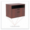 Sturdy file cabinet holds letter or legal files and is great for storage or as a low credenza with your desk. Can be used as a return to expand your desk space to create "L" or "U" shaped desk configurations. Coordinating laminates for use with Alera® Valencia, Sedina, or Open Office Desk Series. Three storage spaces including lateral file drawer, pencil drawer, and open storage. Full extension, ball-bearing slides for easy access to everything. Configurable left or right-handed. Durable woodgrain laminate is scratch, dent, and water-resistant. Leveling glides compensate for uneven floors. Two, fold-away safety keys.