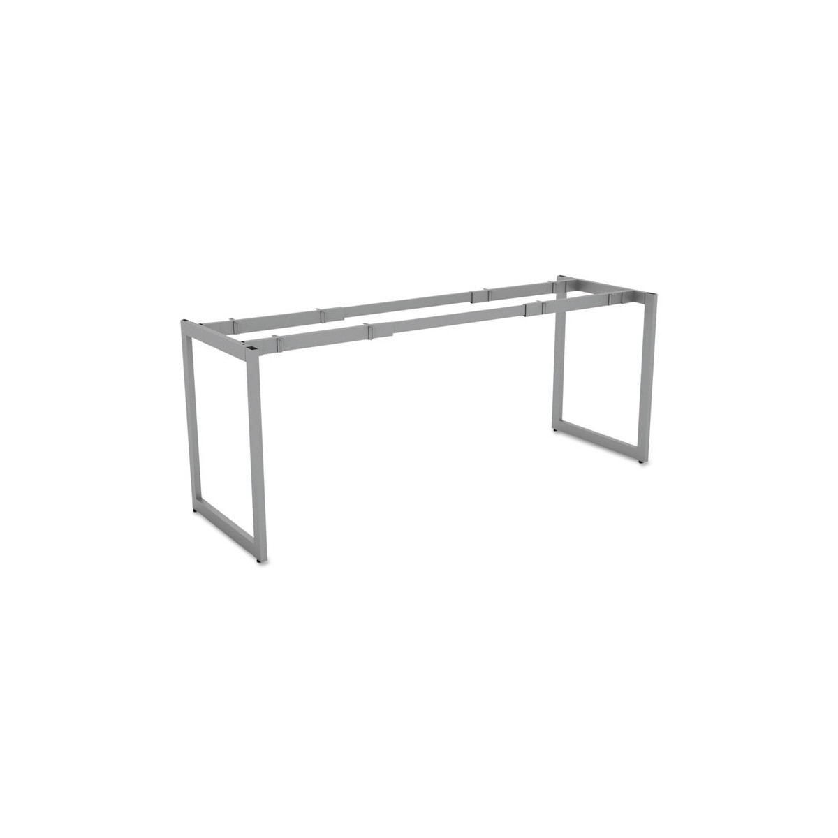 Contemporary open plan O-leg design accommodates almost any size tabletops. Coordinates with Alera® Reversible Laminate Tabletops. Durable steel frame adjusts to fit standard 48" to 72" wide work surfaces. Includes two full length O-leg supports and one short O-leg support. Use short O-leg support to create worksurface on top of low credenza units. Add low profile storage solutions to create layered "L" or "U" shaped configurations. Leveling glides help compensate for uneven floors.