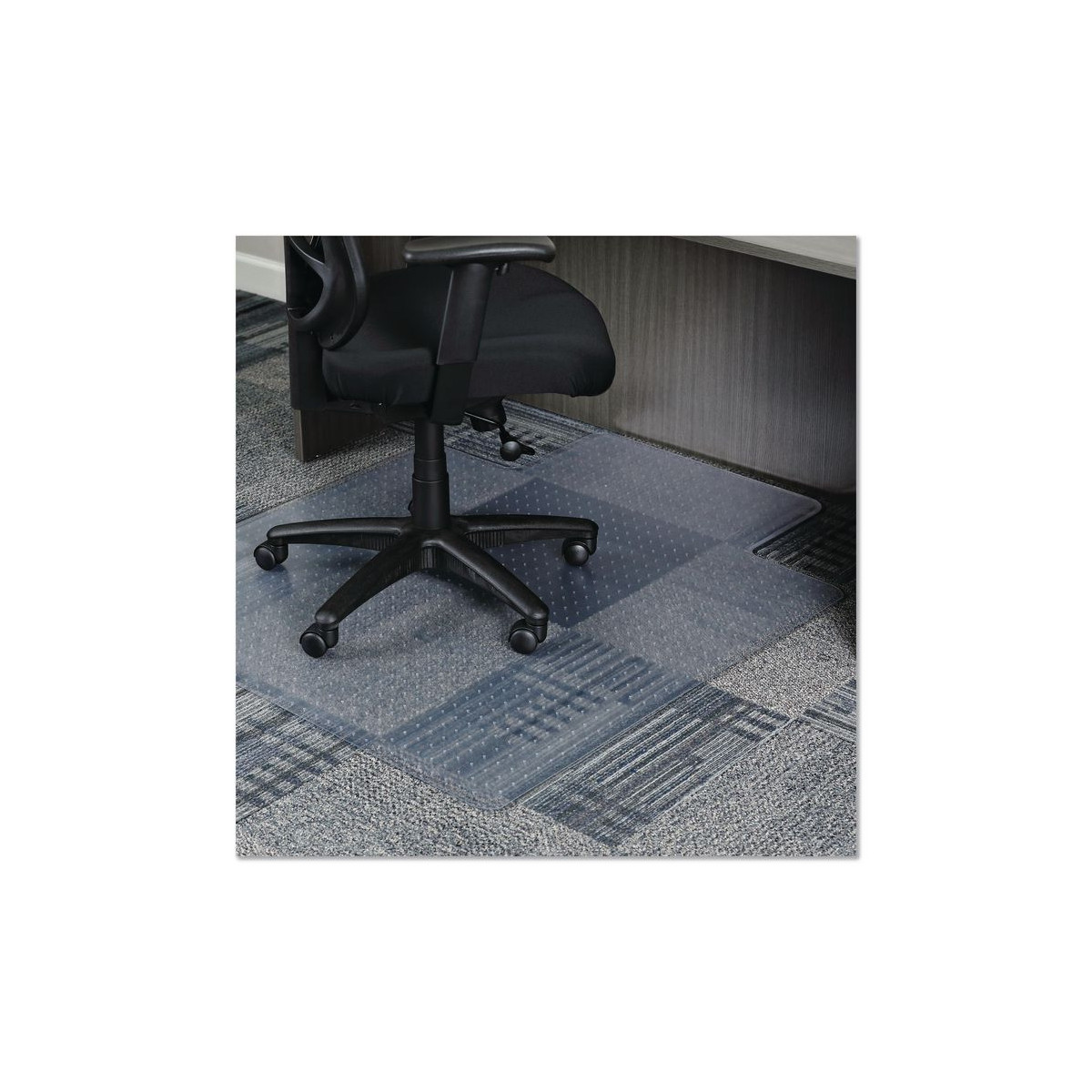 Thinner mat provides a great value while offering economical performance. Lightweight chair mat for occasional use on carpets up to 1/4" thick. Easy-glide rolling surface provides effortless chair movement. Studded design secures mat from moving while protecting carpet from caster wear, spills and heavy traffic. Free and Clear® non-orthophthalate, non-cadmium formula promotes a healthy work environment while offering exceptional clarity and durability. Classic straight edge finish.