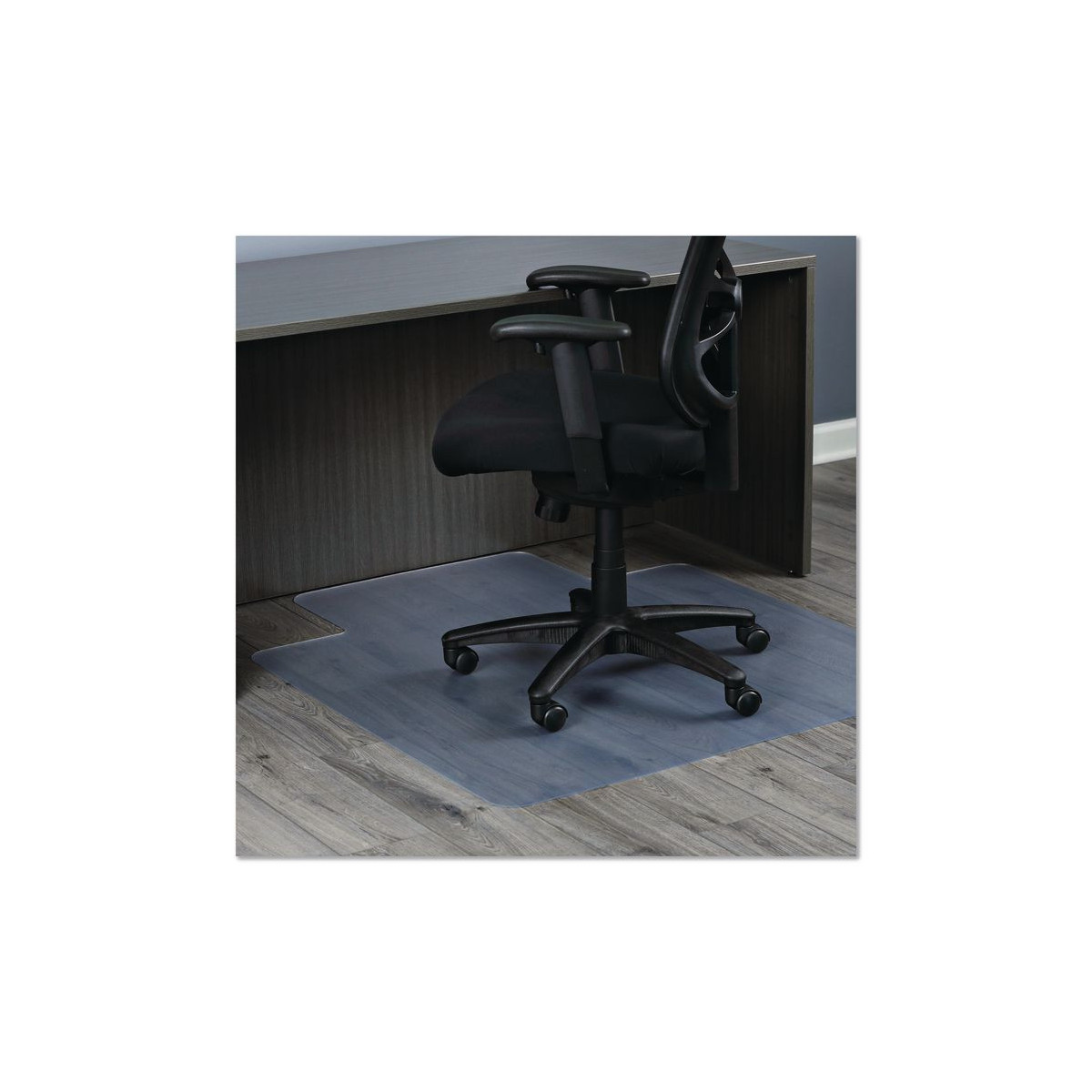 Non-studded design protects hard floor surfaces from caster wear, spills and heavy traffic. Ideal for use on wood, tile, laminate and other hard floors (Not suitable for use on concrete floors). Non-orthophthalate, non-cadmium formula promotes a healthy work environment. Classic straight edge finish.