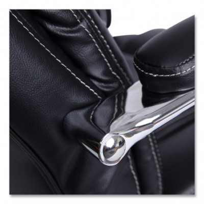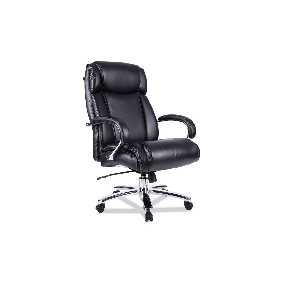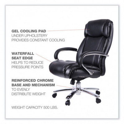 This cushioned, bonded leather chair provides maximum comfort and support for the big and tall users. Unique gel cooling pad technology under the upholstery provides constant even cooling. Coil spring technology in the seat enhances the sitting experience for a more mattress-like support. Heavy-duty, chrome base and mechanism are reinforced and help to evenly distribute weight. Waterfall seat edge helps to reduce pressure points at the back of the knee.