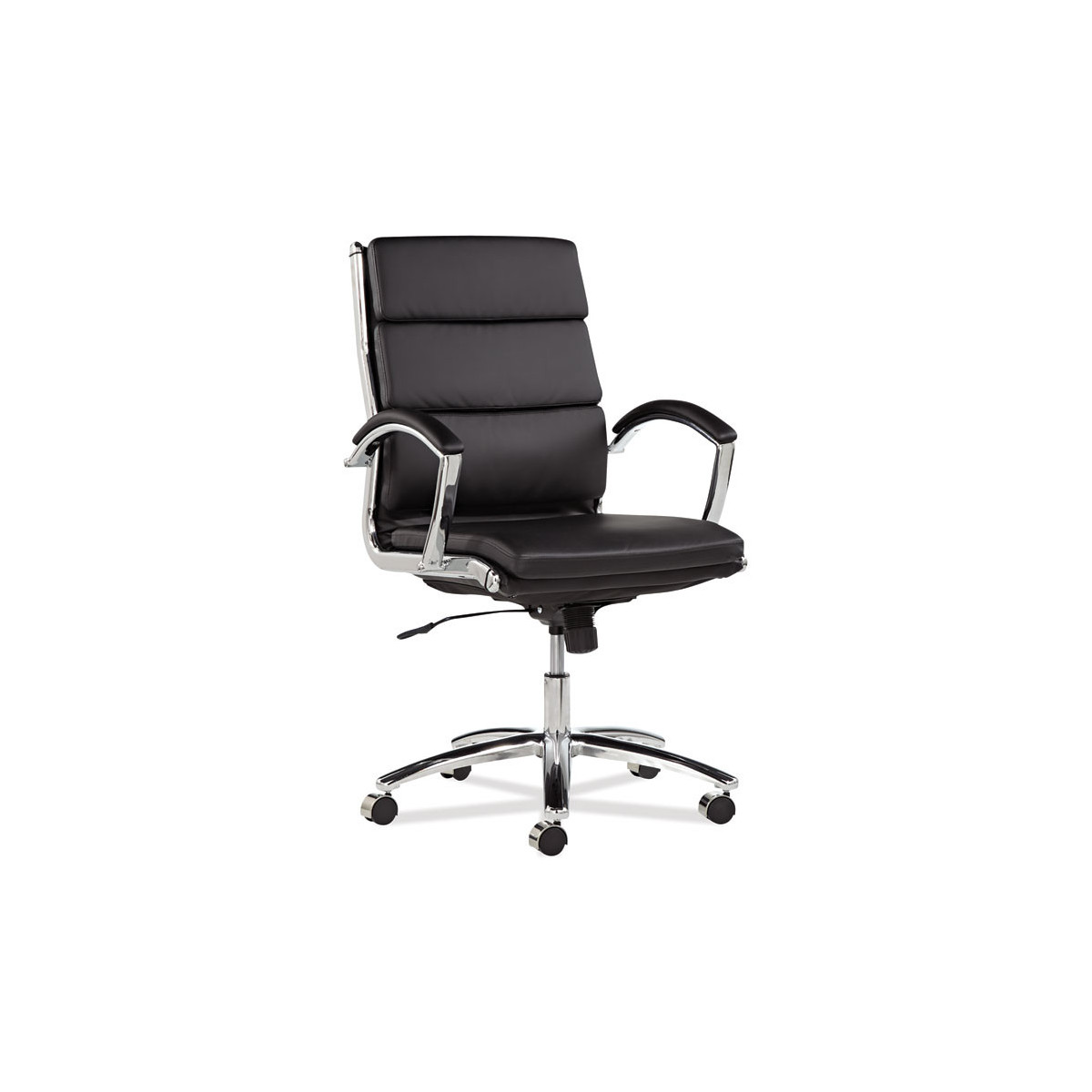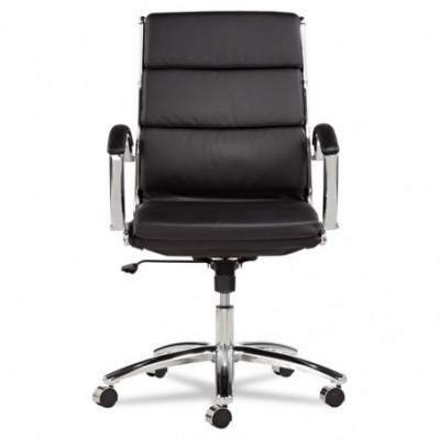 Contemporary padded seating blends sleek design with soft, supportive comfort. Its waterfall seat alleviates pressure behind the knees to help improve circulation. Carefully cushioned armrests feature padded caps for enhanced comfort during extended use. Designed with a stable five-star chrome base and smooth casters, it delivers easy mobility across office spaces.